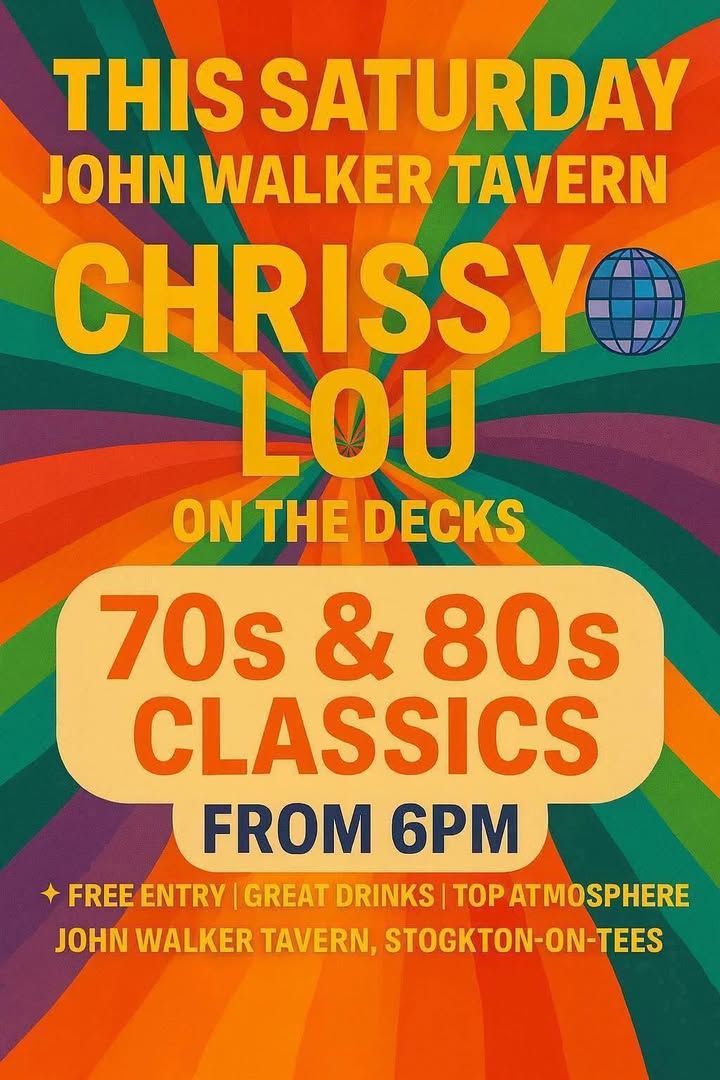⭐️⭐️⭐️DJ TIME⭐️⭐️⭐️ ✨🎶 This Saturday at John Walker Tavern! 🎶✨ Get ready for the ultimate throwback night 70s & 80s Classics with Chrissy Lou on the decks! 🪩💃🕺 📅 From 6PM ✅ Free Entry 🍹 Great Drinks 🎉 Top Atmosphere 📍 John Walker Tavern, Stockton-on-Tees